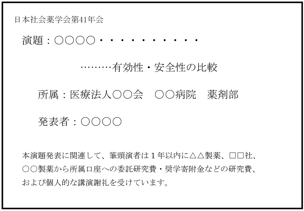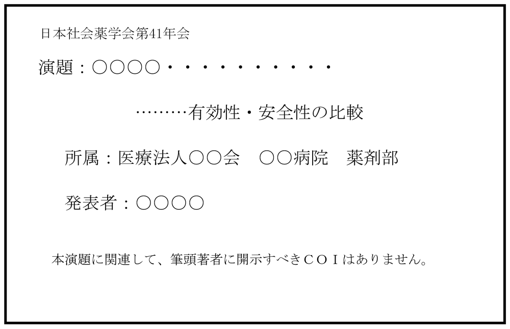 筆頭発表者は日本社会薬学会年会参加時点で日本社会薬学会の会員である必要があります。